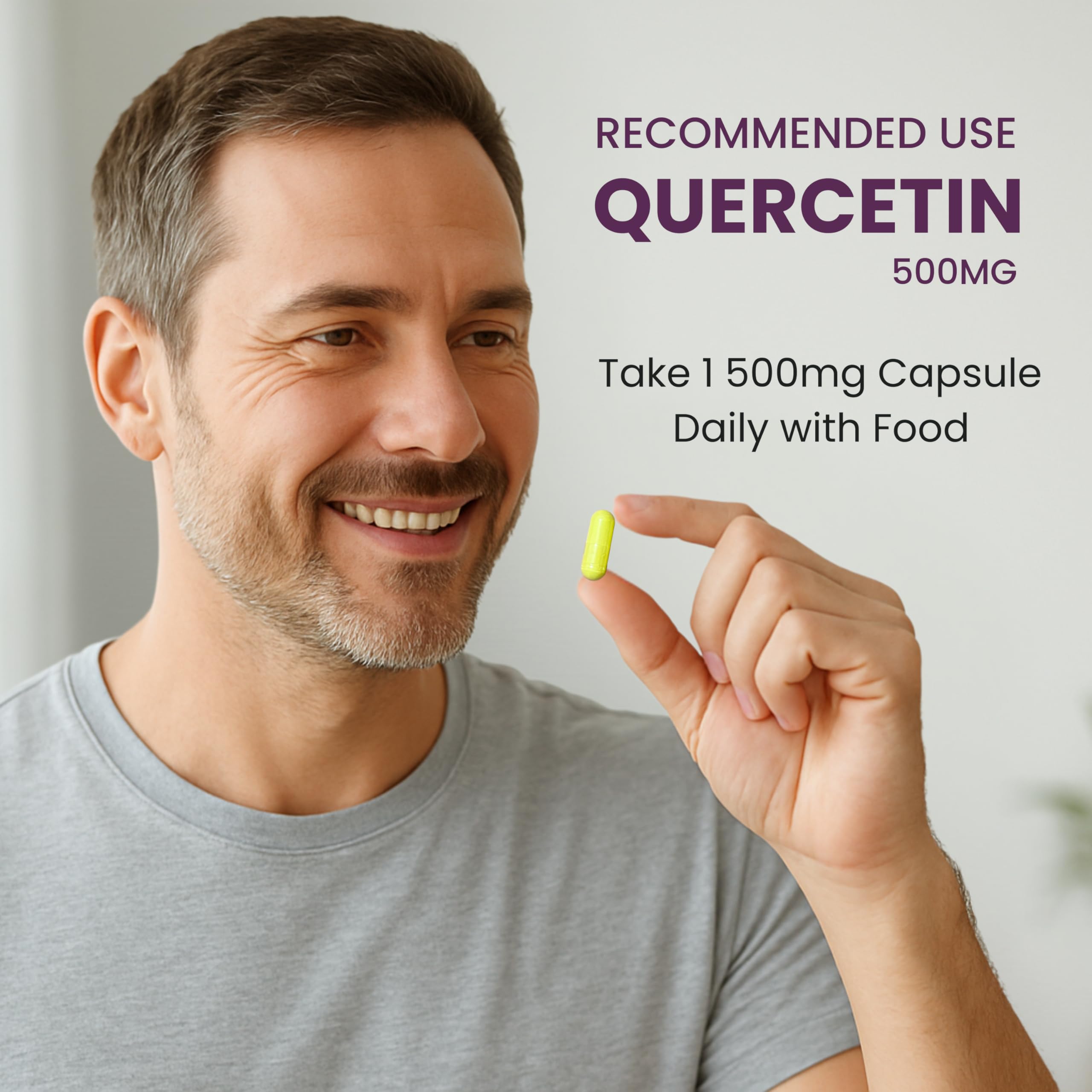 At 500mg per capsule, this potent formula uses quercetin dihydrate to enhance absorption, maximizing bioavailability and efficacy compared to standard quercetin supplements. Research highlights quercetin’s benefits in reducing inflammation, supporting cardiovascular health, and aiding respiratory function during allergy seasons.